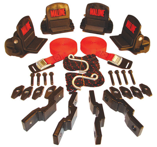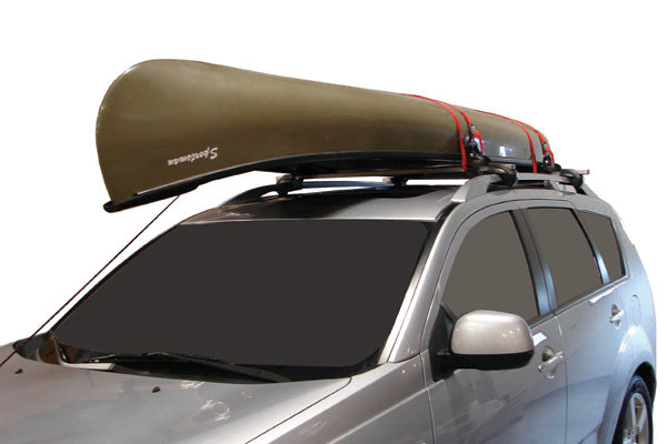 The Malone Big Foot Pro™ universal car rack canoe carrier is a great design and advancement in affordable canoe transport. It easily installs on virtually any vehicle or trailer cross rail system and will transport one canoe. This is a very affordable way to get your canoe to the water.• Solid platform guarantees boat safety during transport • Padded deck area maintains boat condition for smoother ride and better protection of canoe • Universal JAWZ™ mounting hardware fits round, square and factory oval cross rails • Corrosion free and UV resistant • Capacity: 80 to 90 lb canoe • Dimensions: 5.5" (length) x 5" (width) x 4.5" (height) • Frame: Corrosion free polycarbon • Padding: Natural rubber padding