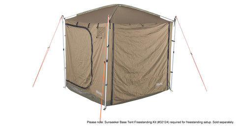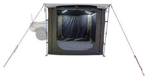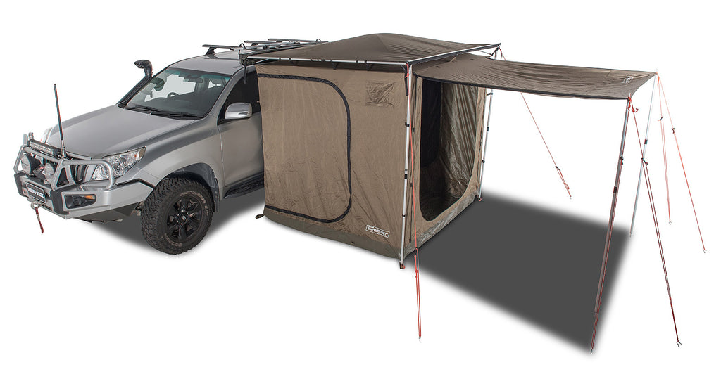 The new Base Tent 2500 has been designed to keep you comfortable in any environment. With it’s tried and tested polycotton construction, large fly screen doors and unique dome roof, the Base Tent is a great place to stay protected from nature’s elements. Use it with a Sunseeker 2500 Awning or set it up as a freestanding tent with the help of our separately sold Freestanding Kit (#32124) - the options are yours. Take the Base Tent 2500 on every adventure and exploration mission because that's what Rhino-Rack made it for.• Dome roof for extra internal height and effective water run off during showers and storms • 4 doors for easy access • Internal roof storage • Insect proof mesh screens • Cross flow ventilation pockets for reduced condensation • Attaches to Sunseeker 2500 or use as a stand alone unit (Requires part# 32124) • Acts as a thermal barrier from the sun, reducing the tent’s internal temperature • Can be set up as a freestanding tent (Requires part# 32124) • Can be used in conjunction with a Tagalong Tent (Part# RV5T) & Awning Extension (Part# 31101 or 32117) • Two internal zippered power ports and cable routing for LED light cables • Weatherproof zippers • MouldShield™, UV protected and waterproof ripstop polycotton canvas • PVC waterproof floor • Carry bag, guy ropes & pegs are included