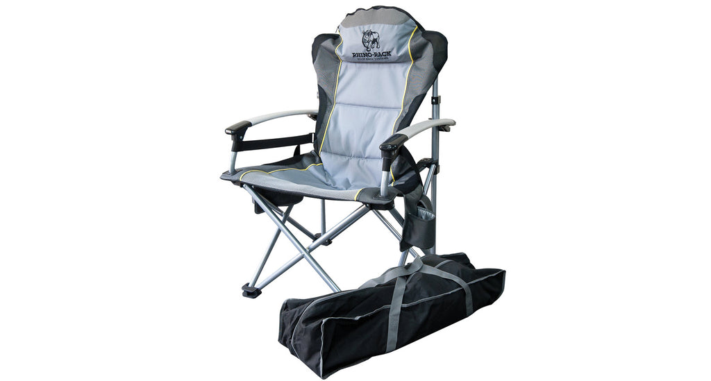 The Rhino Camping Chair is the most comfortable camping chair on the market. With a high back design and heavy duty solid arms this chair not only looks great but is sturdy, functional and extremely comfortable. The Rhino Camping Chair comes complete with a carry bag which zips into a pillow. Also included are 2 x integrated can holders and coolers. The chair only weighs 7.2kgs and has a safety maximum weight capacity of up to 150kg.• Very comfortable • High back design and heavy duty solid arms • 2 x integrated can holders and coolers • chair only weighs 7.2kgs • Weight capacity of up to 150kg • Includes carry bag